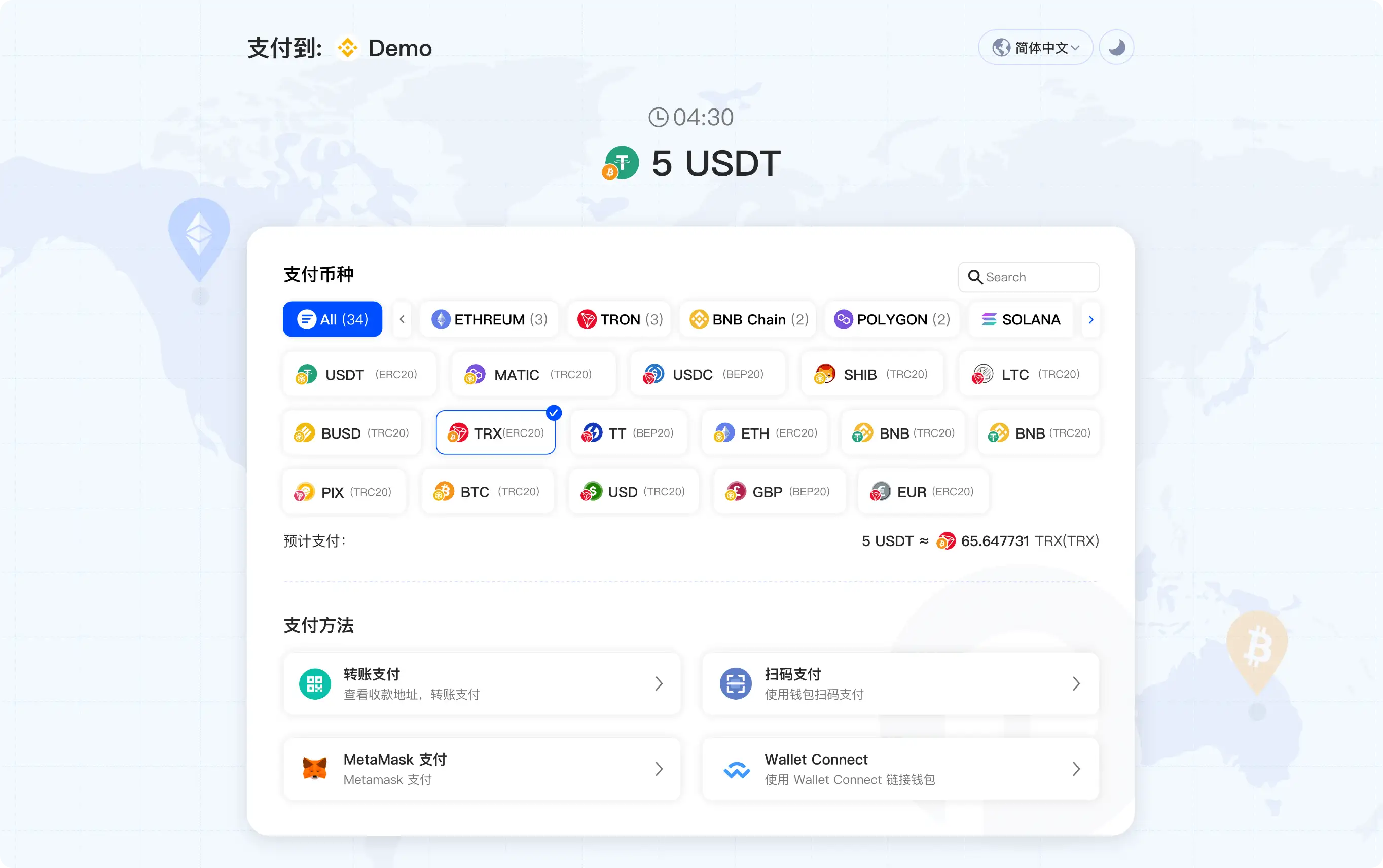 It is free to settle in, and we provide a powerful and customizable checkout page with Multi-chain support, enabling multi-currency and multi-wallet payments.
