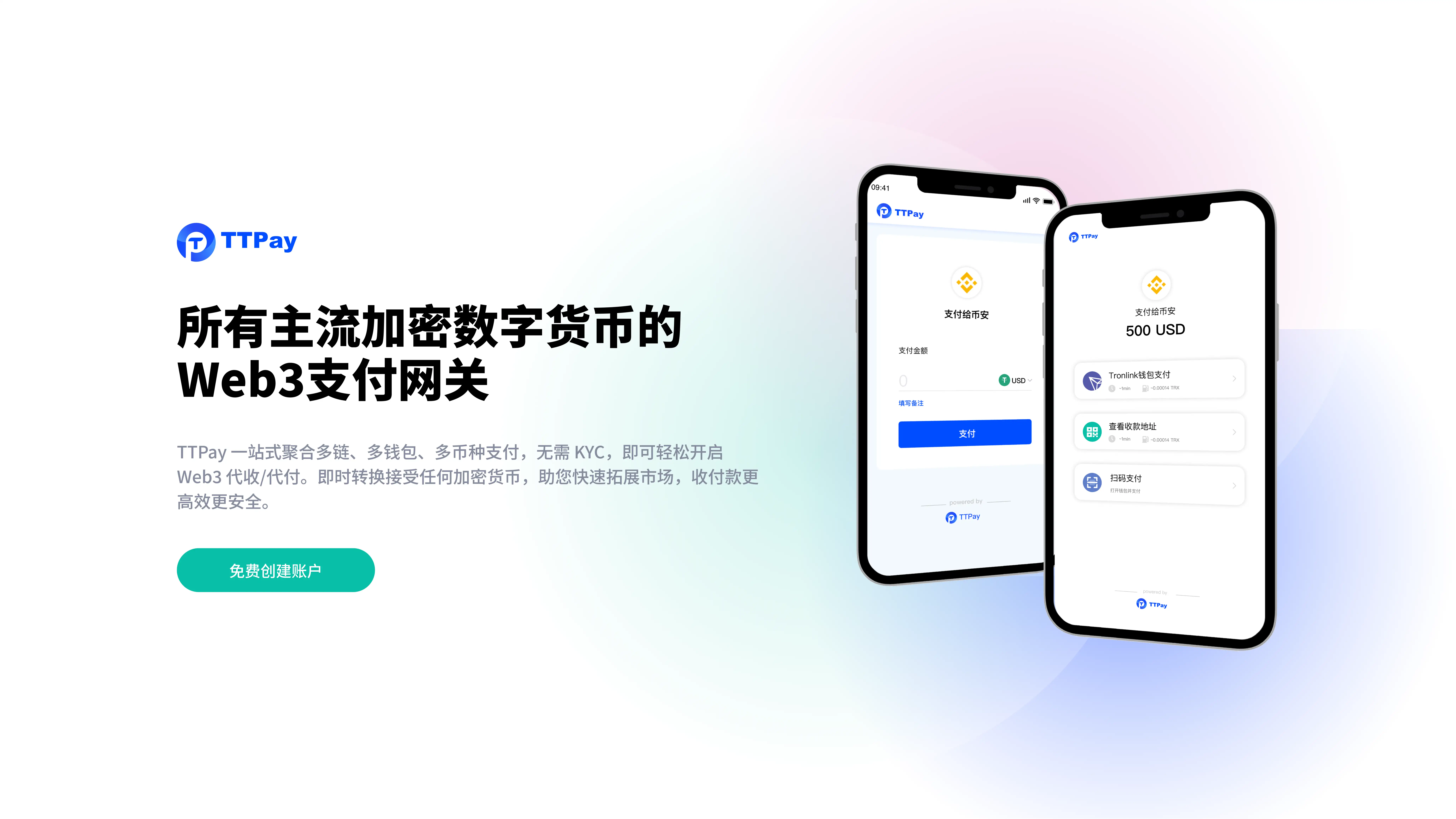 TTPay provides a seamless Web3 payment/payout solution with full support for USDT、USDC、ETH、BNB、TRX and major crytocurrencies payment , while aggregating Multi-chain crypto transactions including ETH, BNB, TRON, POLYGON, and more — all accessible through one API. With no KYC required, TTPay makes global payments easier, safer, and more efficient, helping you unlock new markets with instant conversion and acceptance of any cryptocurrency.